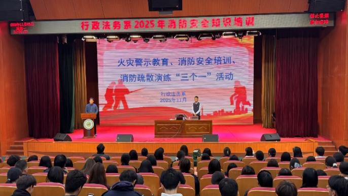 为筑牢校园安全防线,强化师生消防安全意识,普及应急处置技能,11月3日,行政法务系在学校礼堂组织2025级全体学生,开展“火灾警示教育+消防安全培训+消防疏散演练”主题教育活动。