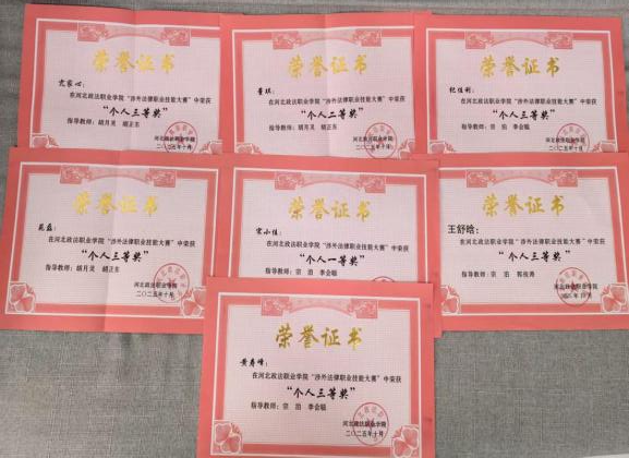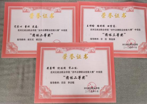 近日,学校举办的涉外法律职业技能大赛圆满落幕,行政法务系斩获佳绩。宋小佳同学荣获个人一等奖,董琪同学荣获个人二等奖,亢家心、黄寿峰、苑磊、纪佳利、王舒晗荣获个人三等奖。同时两支代表队荣获团体二等奖,一支代表队荣获团体三等奖。