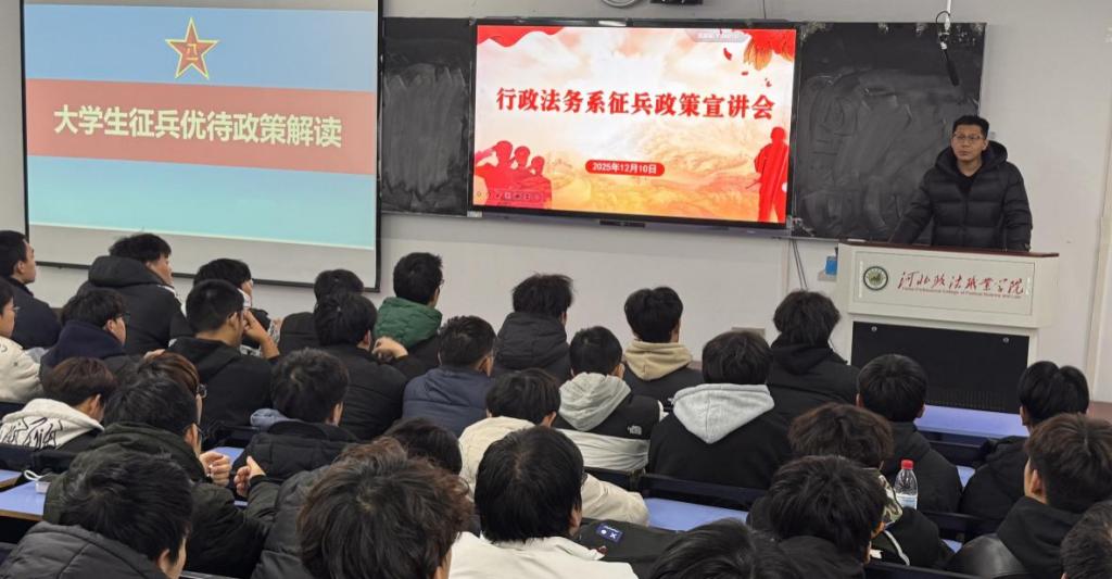 为进一步普及征兵政策,激发青年大学生的参军热情,引导有志青年投身国防建设,12月10日,行政法务系邀请学校武装部马海林老师,为全系男生开展了一场征兵政策宣讲活动。