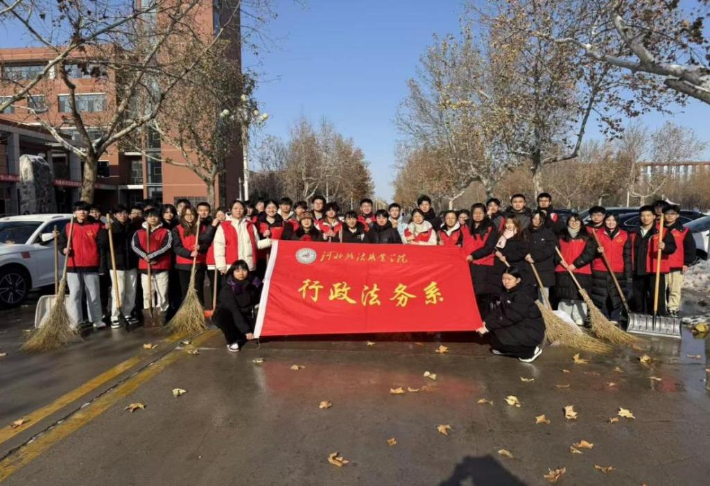 12月13日,校园内积雪结冰,给师生出行带来诸多不便。为保障校园通行安全,行政法务系学生工作党支部组织师生党员、入党积极分子和学生干部40余人开展扫雪除冰志愿服务活动。